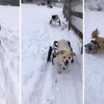 Paraplegic rescue dogs have the time of their of lives playing in Minnesota snow