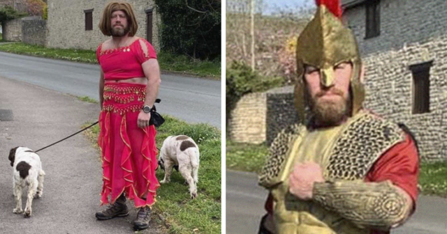 One person making everyone smile is a former Royal Marine from Weymouth, England, who walks his dogs dressed up in fancy costumes during the coronavirus lockdown.